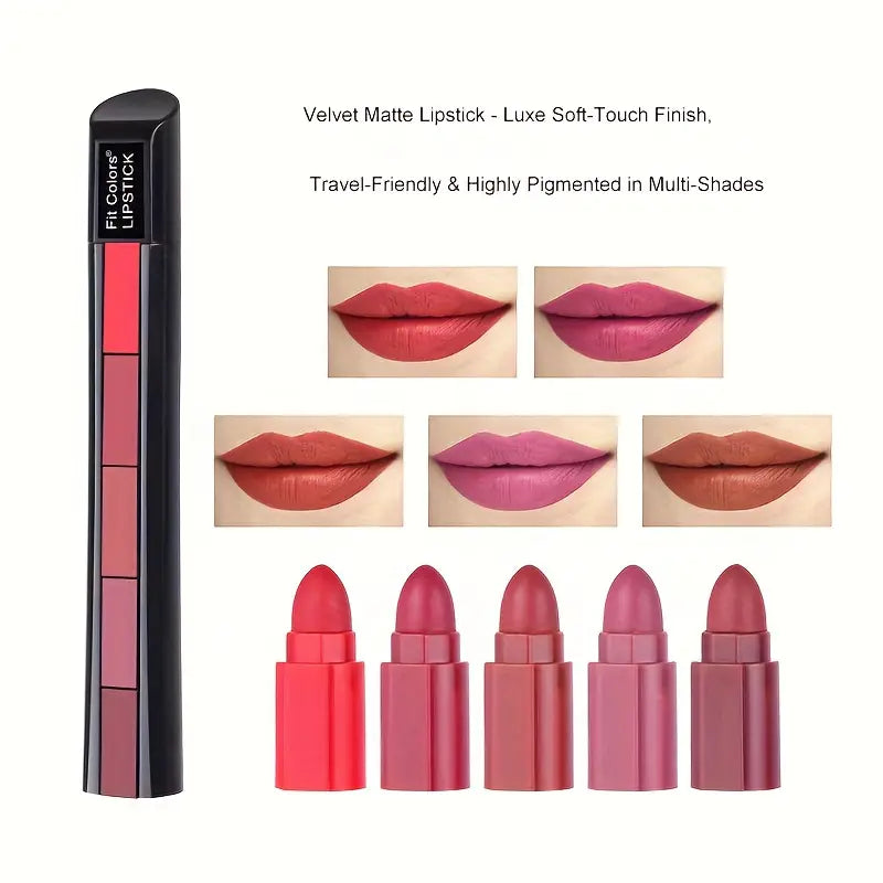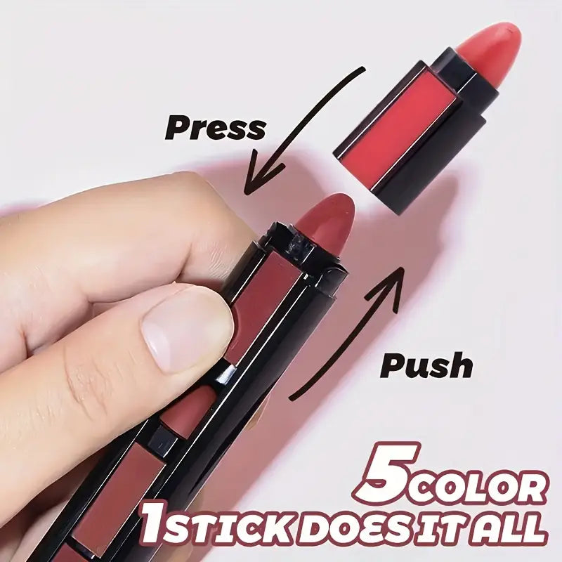 1pc 5-in-1 Matte Lipstick - Long-Lasting Non-Stick Transfer & Smudge Proof, Highly Pigmented Velvet Matte Finish with 5 Vibrant Shades (Nude, Pink, Red, Brown, Black) - All Light Beige Tones, Daily & Special Occasion Lipsticks, Elegant Gift Box for
