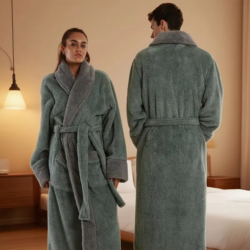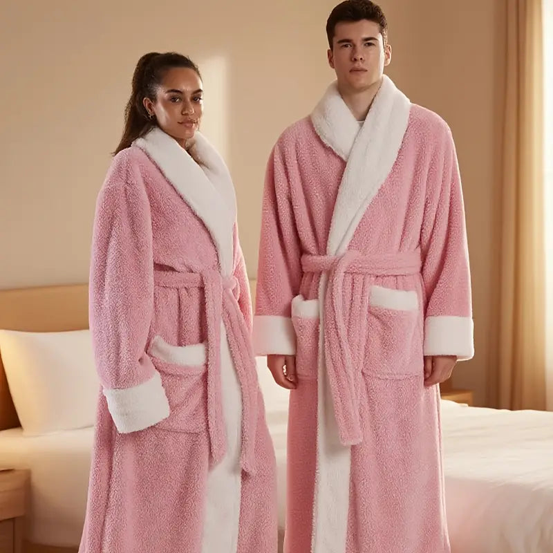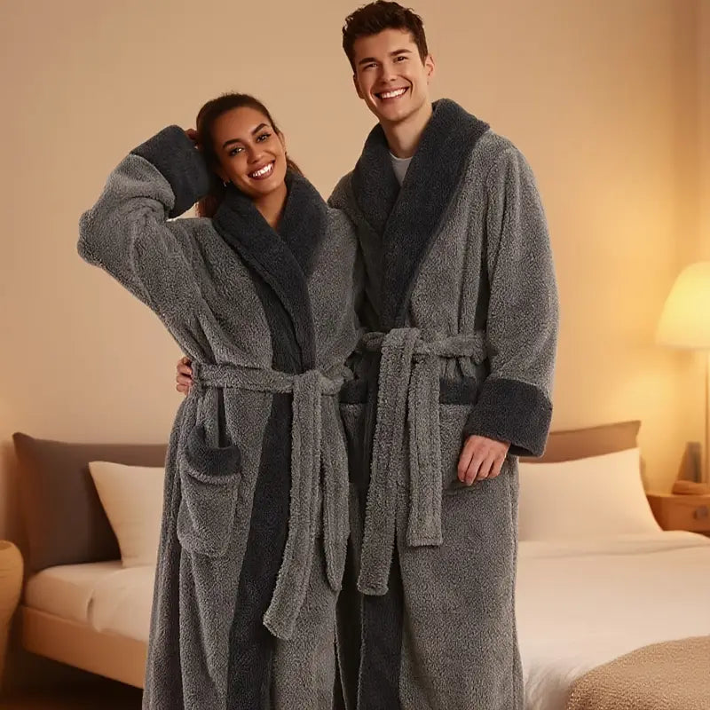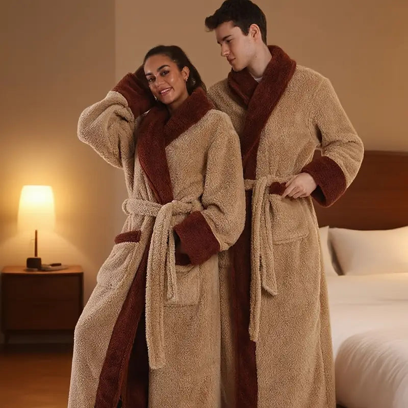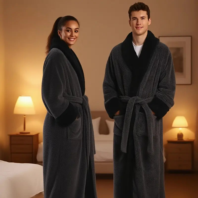 The couple's bathrobe from the 2025 collection boasts numerous striking features: - Fabric: Crafted from soft and high-quality plush material, it offers a comfortable and gentle touch against the skin, while also providing great insulation to keep you warm during chilly days.
