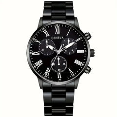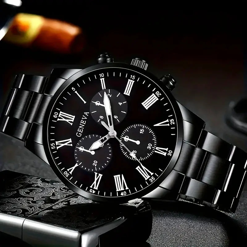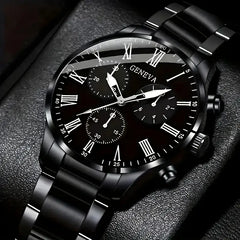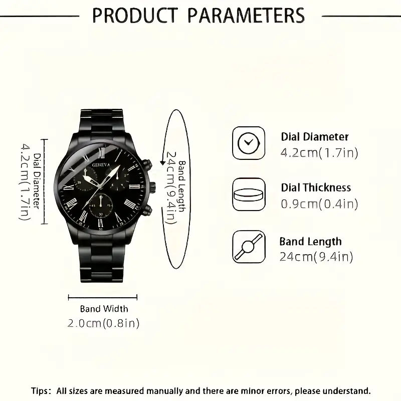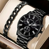 2pcs/set, Fashion Men'S Sports Business Quartz Watch & Retro Stainless Steel Bracelet Set, Ideal Gift for Valentine'S Day, New Year's, Easter, Ramadan, Birthday, Christmas, Eid Al-Adha, Friends And Family
