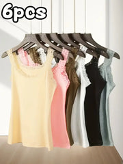 6pcs Contrast Lace Bralette Set - Autumn New Arrival, Casual Fashionable Color Block Women's Top, Versatile Outerwear with Comfortable Stretch, Wardrobe Essential for All Seasons, Includes Bras and Panties