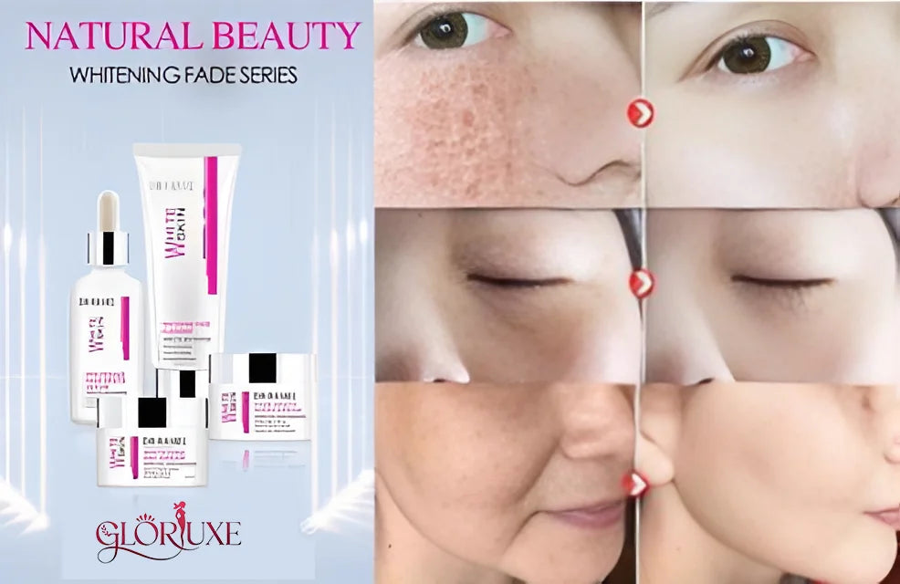 Unlock the secret to a brighter and more radiant complexion with our Dr. Rashel Whitening Fade Series, a pack of four specialized products designed to target dark spots, hyperpigmentation, and uneven skin tone. It has special key ingredients that can change your skin's brighter and more radiant complexion with our Dr. Rashel Whitening Fade Series, a pack of four special products designed to remove dark spots, hyperpigmentation, and uneven skin tone. Start your skincare routine with the Whitening Fade Cleanser, it can remove your skin's impurities and excess oil while promoting a brighter complexion. Then follow up your skin with Whitening Fade Spots Serum, designed for specific areas where hyperpigmentation can give intensive treatment. Apply it in the morning Whitening Day Cream to enlighten your skin's tone and provide hydration and protection throughout the day.when you are going to bedroom then use the Fade Spots Night Cream. It gets to work overnight to enlighten dark spots and give your skin a healthier glow. All products have the special ability of moisturizers that can be removed when your skin gets well-nourished, avoiding dryness and giving your skin that glow. Despite being strong, all products are light and get absorbed into your skin immediately without greasiness. Use all four products in your daily skincare routine to get the best results and learn how to achieve beautiful glowing skin. When you use the Whitening Fade Series regularly, your skin looks clearer, dark spots are not as noticeable, and you have a brighter and more radiant complexion.Β Suitable for all skin types, our Whitening Fade Series caters to everyone seeking effective whitening and brightening benefits.