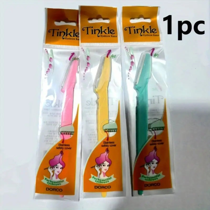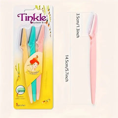 Tinkler Eyebrow Razor - Precision Dermaplaning Tool for Women & Men, Stainless Steel, Travel-Friendly, Classic Design with Colorful Handles, Includes 3 Interchangeable Heads